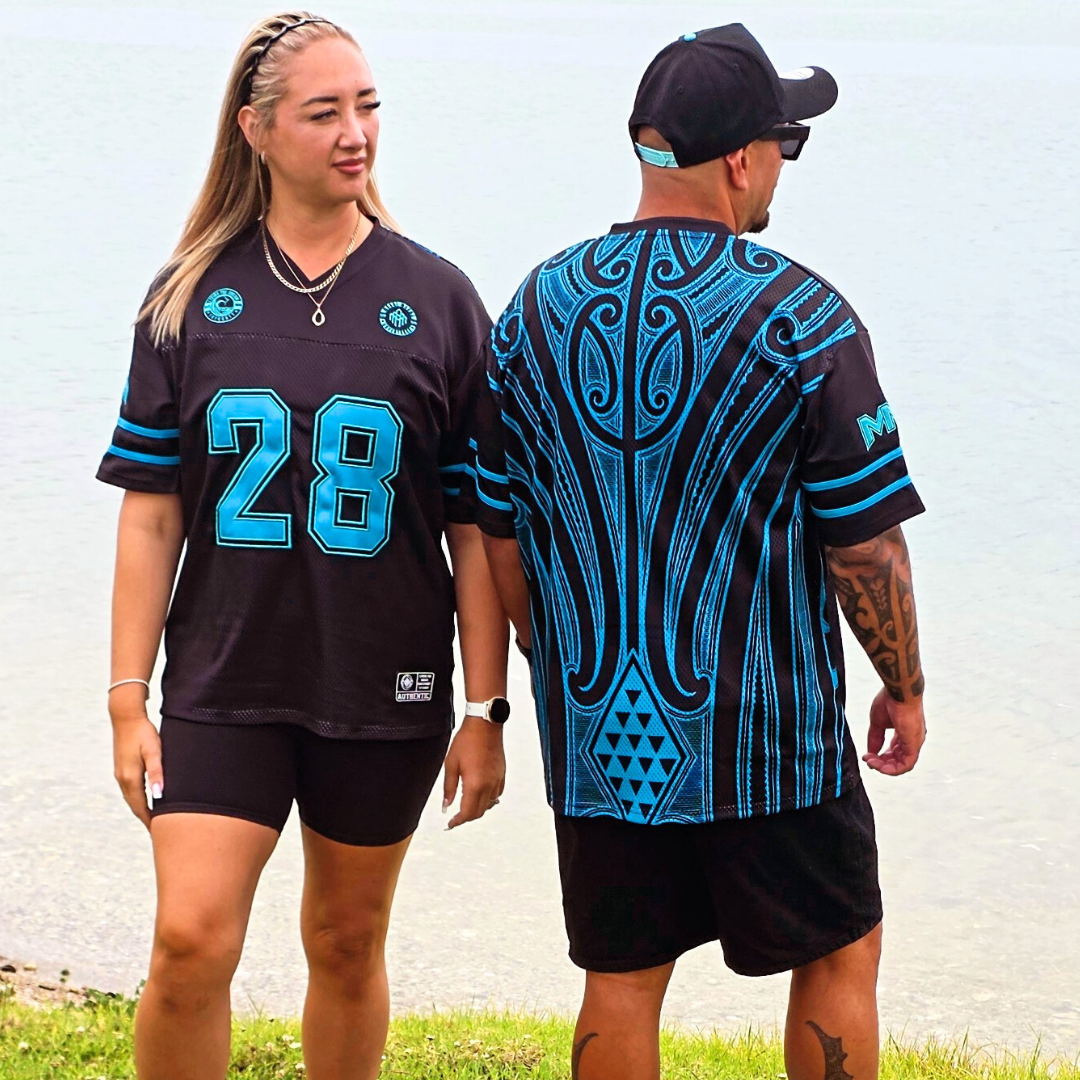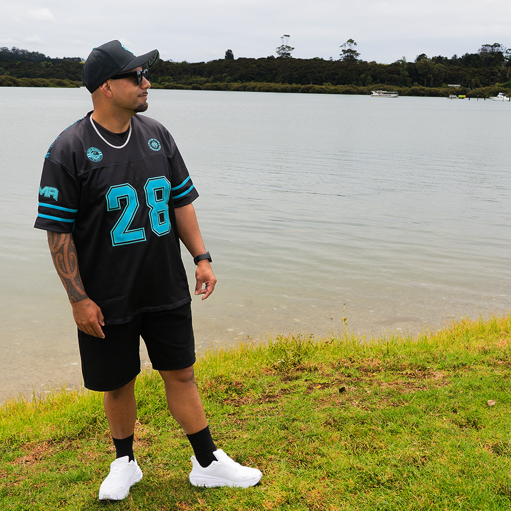 The Māori back design honours traditional artforms, symbolising protection, strength, and identity - reflecting the unstoppable force of the tide and the legacy carried forward. The deep black base contrasted with striking turquoise blue accents represents strength, flow, and connection to the moana, inspired by resilience that moves with purpose. The number 28 pays tribute to the 28th Māori Battalion - a powerful symbol of courage, loyalty, and excellence across generations.