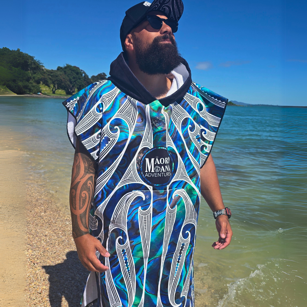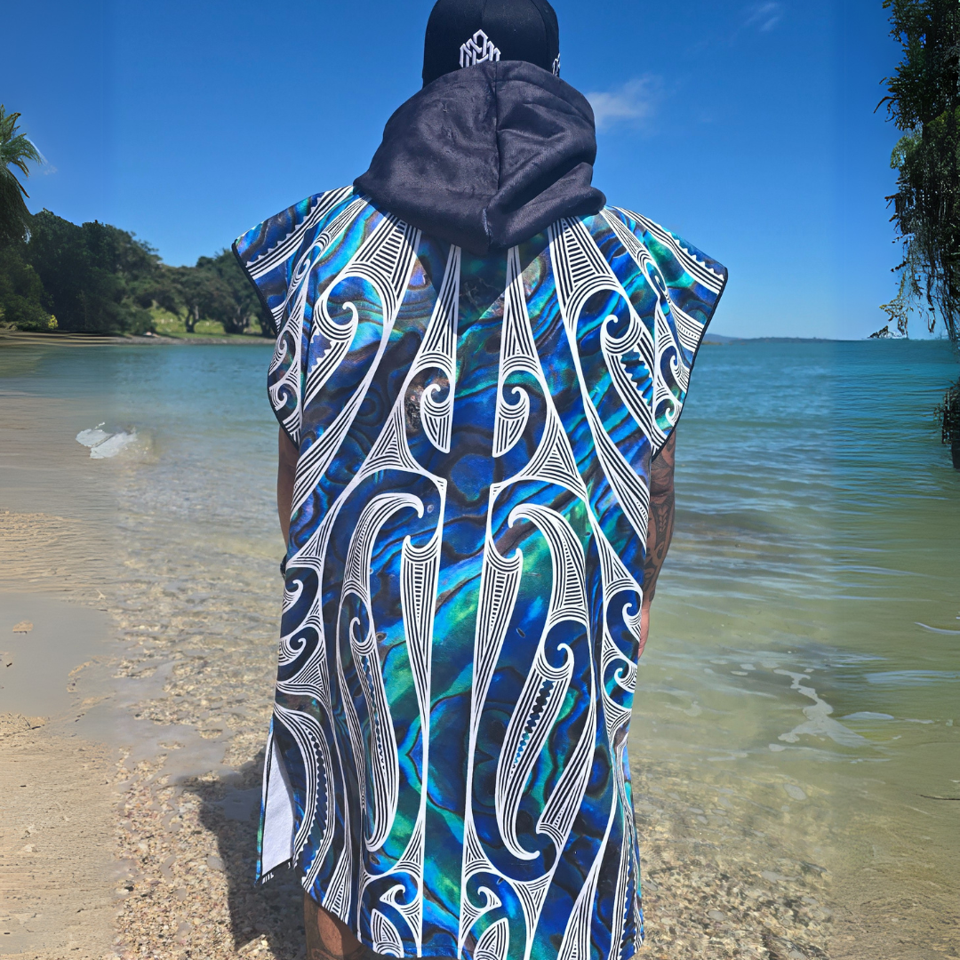 These towels are crafted to combine practicality with style. The outside material features luxuriously soft velour, showcasing vibrant colors and a unique Māori design that will never fade. On the inside, 100% absorbent terry cotton keeps you dry after a swim or surf. Whether you’re at the beach, by the pool, or exploring the outdoors, our Poncho Towels are your ultimate companion for comfort and cultural pride.