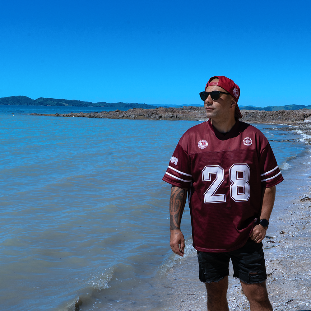 The Maroon Jersey blends athletic edge with deep cultural pride, bringing a bold new energy to the Māori Moana legacy. Crafted with a heavy-weight mesh body and back for ultimate breathability and strength, it’s built to withstand every adventure. Luxe shoulder panels add softness and all-day comfort, while premium embroidery and tackle-twill numbering elevate the finish.