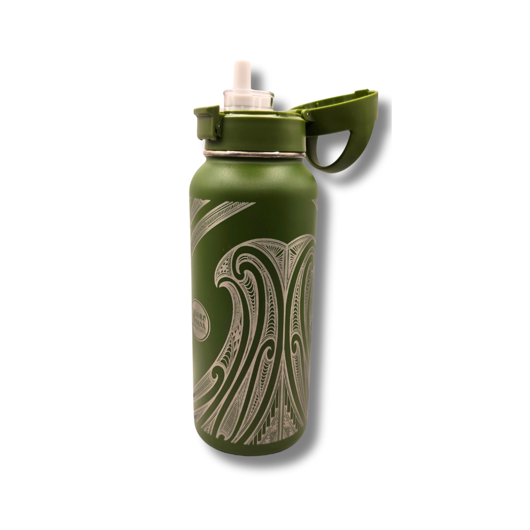 Embrace durability and style with the Army Green Hauora Flask. Its rugged, earthy tone perfectly complements the intricate Māori design, Ngā Wai Whakaora o Hinemoana, laser-engraved around the bottle. Built to withstand your active lifestyle, this sturdy 1L flask keeps your drinks hot or cold for hours, making it an ideal companion for outdoor adventures, workouts, or everyday use.