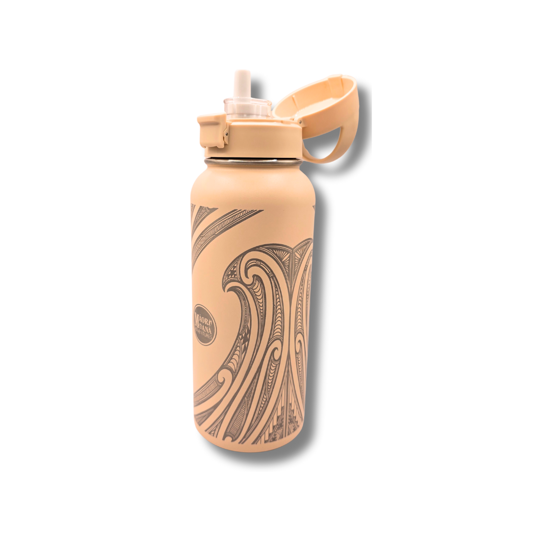 Enjoy your beverages at the perfect temperature with the Cream Hauora Flask. Its soft, neutral tone complements the intricate Māori design, Ngā wai whakaora o Hine moana, elegantly laser-engraved around the bottle, making it a timeless accessory for any occasion.