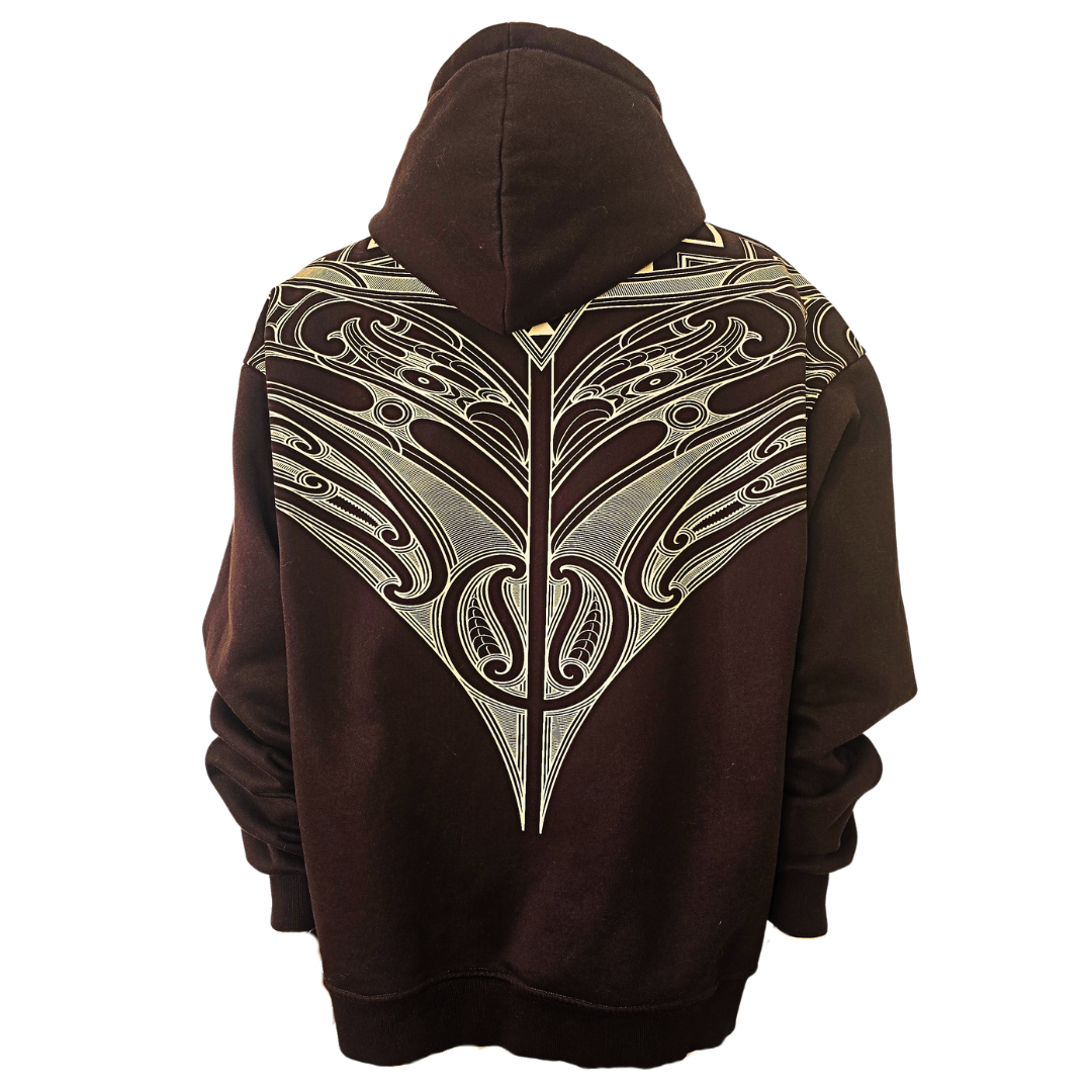 Embrace the perfect blend of comfort and style with our Kaitiaki Hoodie in a Brown and cream colour combo Designed for those who value both functionality and fashion, this hoodie is your new go-to for every season.