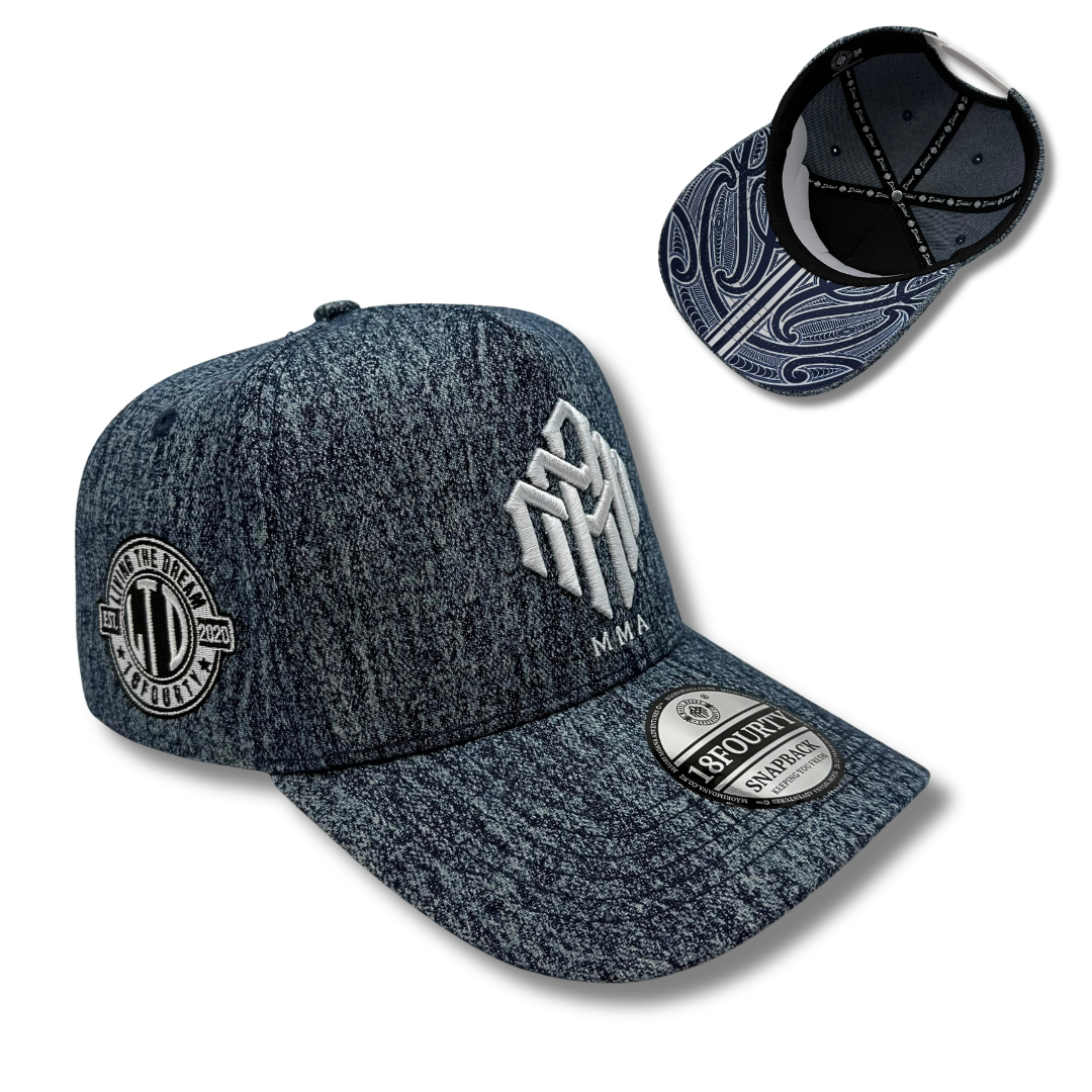 The Denim Blue MMA A-Frame Snapback is the perfect fusion of heritage and modern street style. Featuring a premium denim blue crown and a matching peak with deep tonal accents, this hat adds bold character and effortless style to any outfit.
