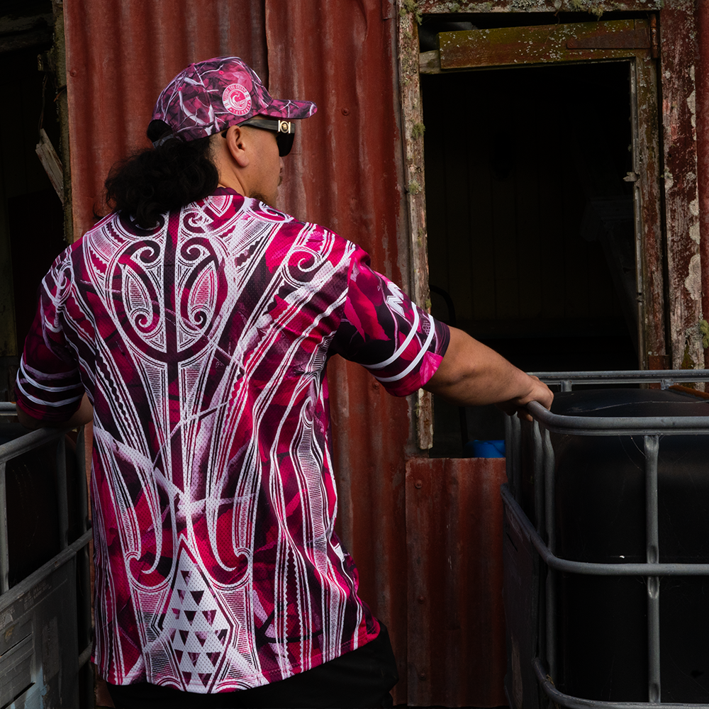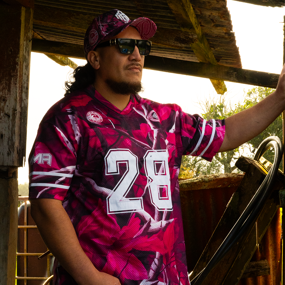 The Māori design reflects traditional artforms, symbolising connection, resilience, and personal journey. The pink camo offers a unique expression of individuality while still being grounded in the whenua. The number 28 honours the 28th Māori Battalion a symbol of bravery, unity, legacy, and excellence.